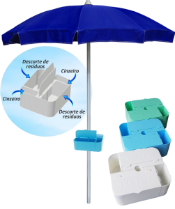 A Eko-Trek é uma lixeira versátil ou porta acessório funcional que se adapta ao guarda-sol, tanto na praia quanto na piscina.